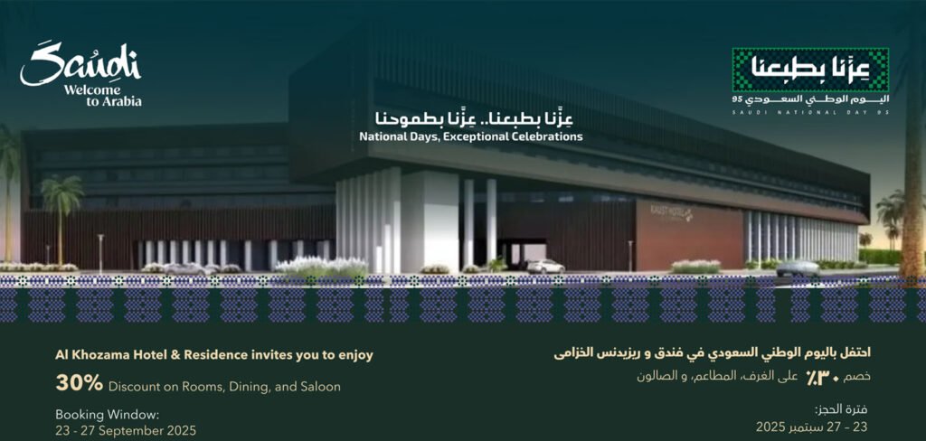 Al Khozama Hotel & Residence invites you to enjoy 30% Discount on Rooms, Dining, and Salon